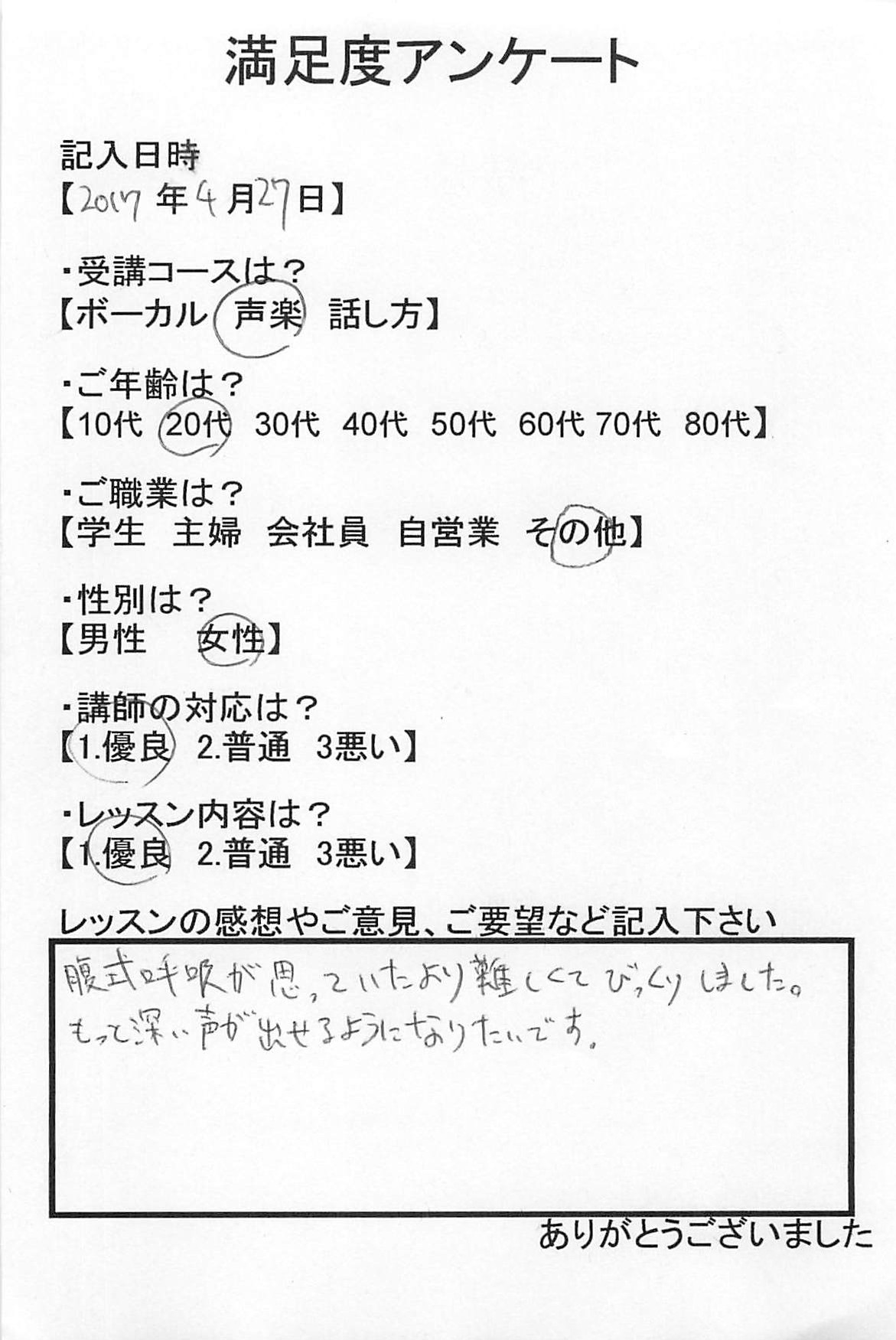 2017年04月20代女性 声楽 尼崎市から満足度アンケート