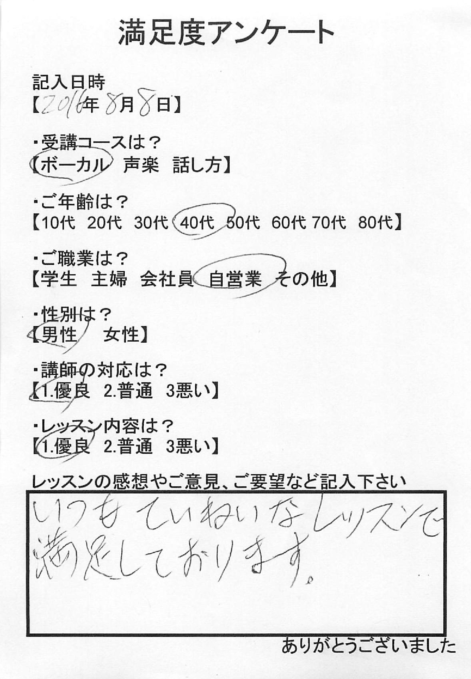 • 40代男性 自営業 大阪市から2016年08月08日