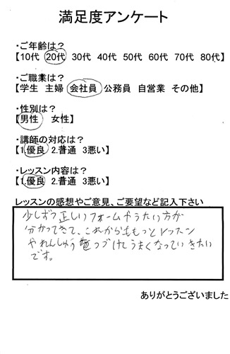 • 2014年09月25日20代会社員 男性の方(満足度アンケート)新大阪から325x500