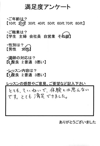 10代女性学生池田市から2015年06月満足度アンケート